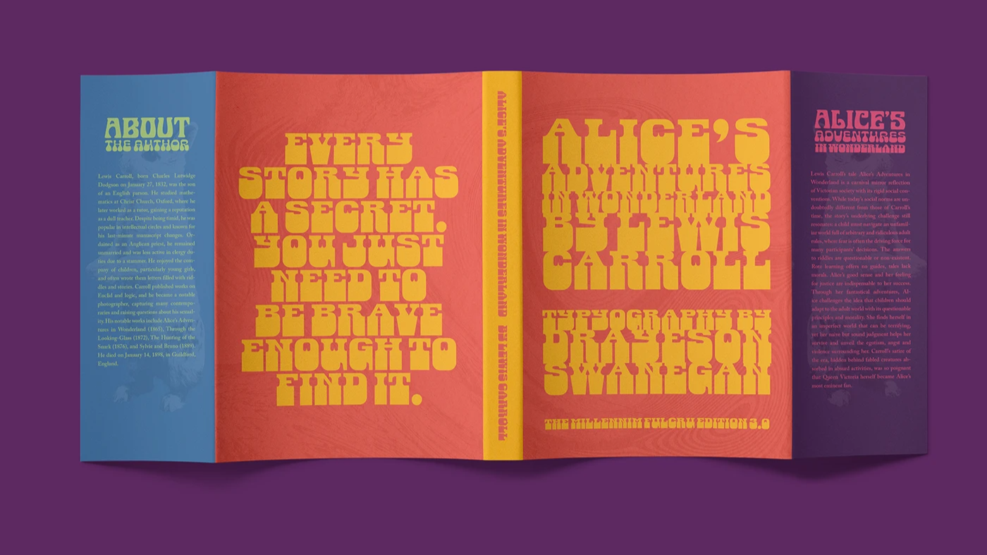 A reimagined journey through Wonderland, brought to life with surreal, psychedelic visuals that distort reality through bizarre yet beautiful typography. Featuring bold, trippy type, vibrant color palettes, and hidden imagery embedded throughout, the experience unfolds with unexpected discoveries as you move through each page.